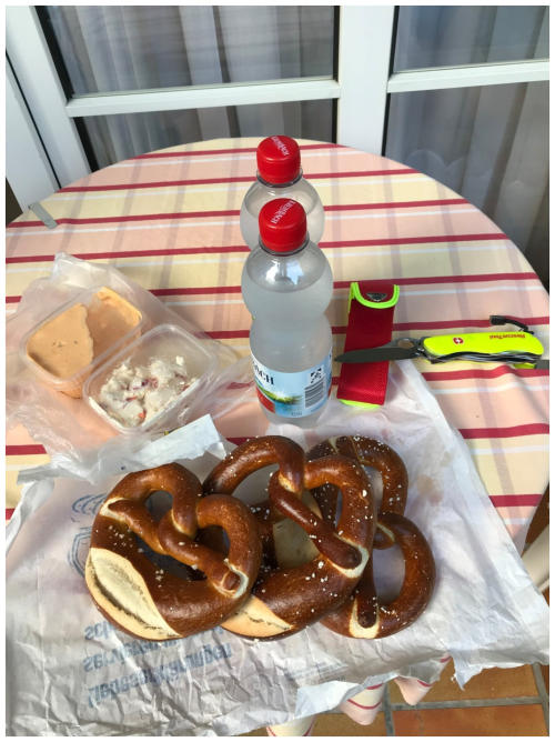 17.43: Brezen, Obazter und Frischkäse mit Peperoni.