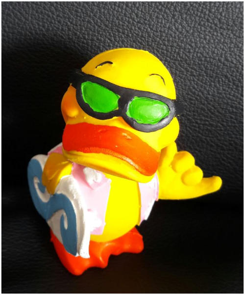 wohnsitzlose, handbemalte Badeente zu: